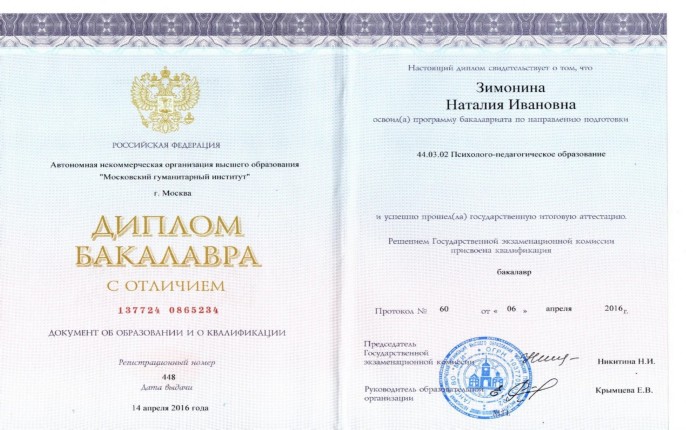 Диплом высшего профессионального образования